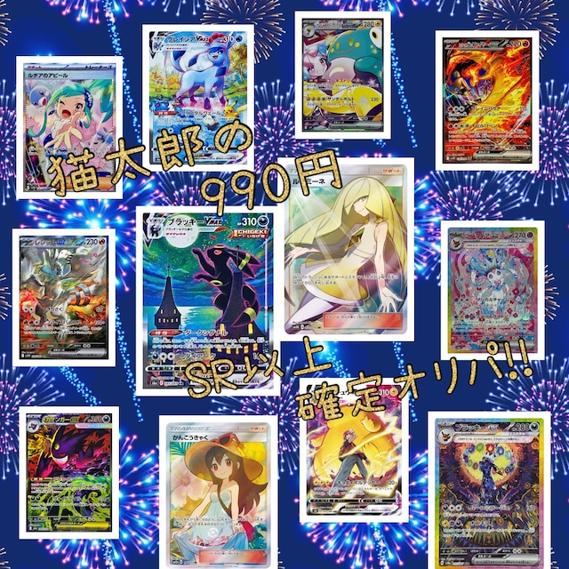 追記:完売しました^^ 1口990円(税込)でSR以上確定の マイルド仕様なオリパです(*⁰▿⁰*) ※5口1セットの販売となります。 ※小当たり以上に関しては全レアリティが 含まれております。 小当たり以上が500口以上!! ※写真に写りきっていない当たりもございます。 演出はありませんが マイルドに楽しめる仕様となっております(*´︶`*) ※当たりに含まれるカードの価値は 商品ページ公開時点における 大手通販サイトカードラッシュ様の 販売価格を参考にしております。 フリマサイトや買取価格の基準ではございませんので 予めご理解の上ご検討をお願い致します。 ★猫太郎のお店 1口990円SR以上確定オリパ★ ※レギュレーションA.B.C.D.E.F.XY.BWのカードも 含まれております。 気にされる方はご購入をお控え下さい。 ☆ポケモンカード 990円(税込)オリパ 5口1セット 990円×5口=4,950円 ☆1口1枚入り ☆全2000口 ☆計400セット ☆購入制限 多くのお客様に楽しんで頂けるよう お一人様20セットまでとなります。(再購入不可) ※20セットを超えてご購入いただいた場合は 大変恐縮ではございますが超過分に関し キャンセル対応致します。 予めご了承ください。 大当たり • アローラの仲間たち(SR仕様)【P】{401/SM-P} • ミュウツーEX(20thアニバーサリー)【P】{XY-P} 中当たり 画像1枚目をご参照下さい。 小当たり 写真2.3枚目に一例を掲載しております。 他にも多数ご用意しています。 その他 SR.SAR.CSR.HR.UR...etc ※当たり以外で封入しているカードの状態に関しては白かけ、線傷、汚れ等一般的なカードショップにおける状態A-からB+程度の状態を含んでおります。 神経質な方の購入はお勧め致しません。 丁寧かつ迅速な対応を心掛けています(`・ω・´) *注意 ・カードの状態に関しては別途記載がない場合、 一般的なカード販売店における 状態Aランクのカードを採用しておりますが、 完美品ではございません。 神経質な方のご購入はお勧め致しません。 また、現行レギュレーションのカードと それ以前のカードでは同じ状態Aランクでも 判断基準が異なります。 一律プレイ用とさせて頂き、 中古であることをご了承の上、 購入をお願い致します。 ・シャッフルの上購入口数分選択するため カードに偏りがある場合がございます。 必ずお目当てのカードを引けるというわけでは ございませんので、ご理解・ご了承の上 購入お願い致します。 ・当商品の上記記載のその他に含まれるカードの 価値は全て、当店の基準にて判断し、一律当商品の 販売価格と同等とさせていただきます。 その他に含まれるカードの一例は 画像4枚目に掲載しておりますので ご参照の上判断ください。 当商品をご購入頂いた方は、 注意事項を全て確認し 内容に同意頂いたと判断させていただきます。 ・カードの内容での評価はご遠慮下さい。 ・ゆうパケット又はレターパックプラスの どちらかをお選びください。 ☆ゆうパケット☆ •追跡サービス有 •ポスト投函 ☆レターパックプラス☆ •追跡サービス有 •対面お届け ・発送後の事故は保証できませんので、 ご了承ください。 ・コンビニ払い・銀行振込は 対応しておりません。ご了承下さい。 (後払い決済を除く) • 後払い決済については下記をご参照下さい。 https://help.thebase.in/hc/ja/sections/201941041-